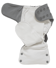 A los padres les encanta el pañal GroVia Organic One Size All in One porque está diseñado para ajustarse al cuerpo de su bebé. El One Size All in One es único porque sus cierres a presión están situados a los lados del pañal, en las caderas del bebé, lo que contribuye al diseño elegante y compacto.